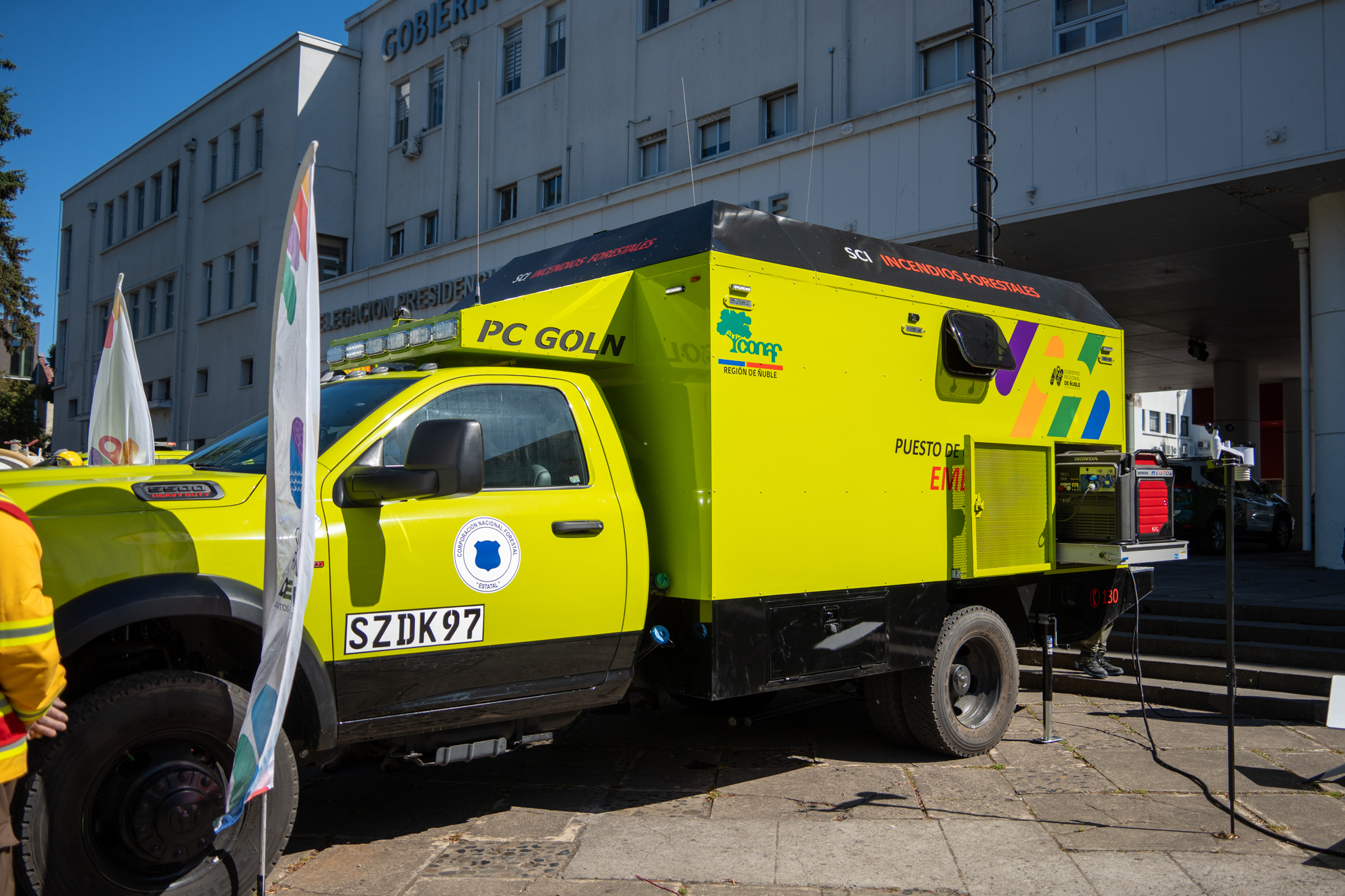 El primer puesto de comando móvil de Conaf en Ñuble, fue presentado hoy por el Gobernador Óscar Crisóstomo y el director regional de la institución, Juan Salvador Ramírez. El vehículo cuenta con tecnología de punta, sistema de telecomunicaciones avanzado, pantallas ultra HD y una autonomía de funcionamiento a través de energía solar.  La inversión, que fue realizada por el Gobierno Regional de Ñuble, asciende a $657 millones, donde se consideran además dos camionetas especializadas.