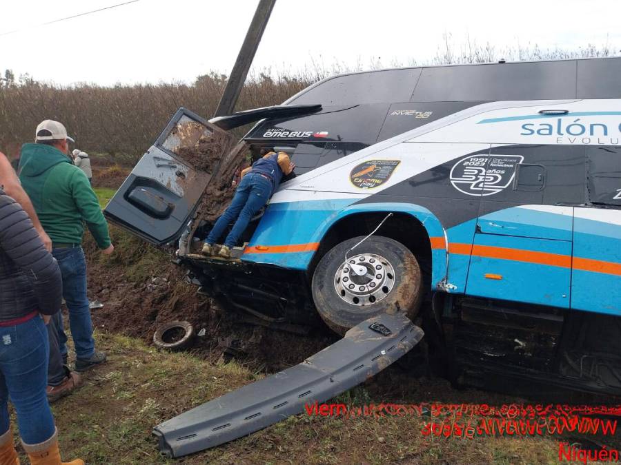 Se trató de una colisión protagonizada por un vehículo y un bus de la empresa EME BUS. Posteriormente, la máquina que transportaba 40 pasajeros volcó en una zanja.