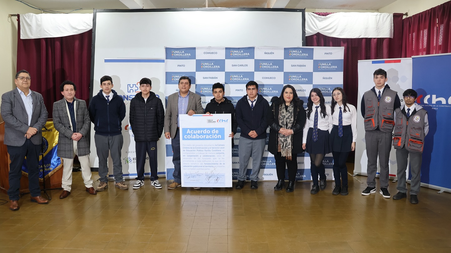 En una significativa ceremonia realizada en el Liceo Politécnico Capitán Ignacio Carrera Pinto, el Servicio Local de Educación Pública Punilla Cordillera y la Cámara Chilena de la Construcción (CChC) Ñuble firmaron un acuerdo de cooperación y colaboración orientado a potenciar la formación de estudiantes de liceos Técnico-Profesionales (TP) del territorio.