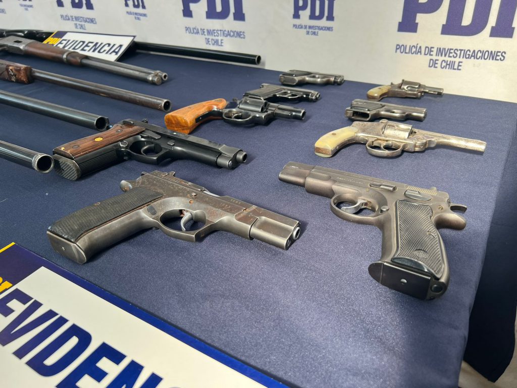 “Durante las diligencias investigativas y el registro autorizado del inmueble, los oficiales incautaron dos pistolas, un revólver, cartuchos de municiones y balines de goma, elementos que fueron levantados como evidencia por el personal especializado” señaló el jefe de la unidad especializada subprefecto Jonathan Silva Concha.