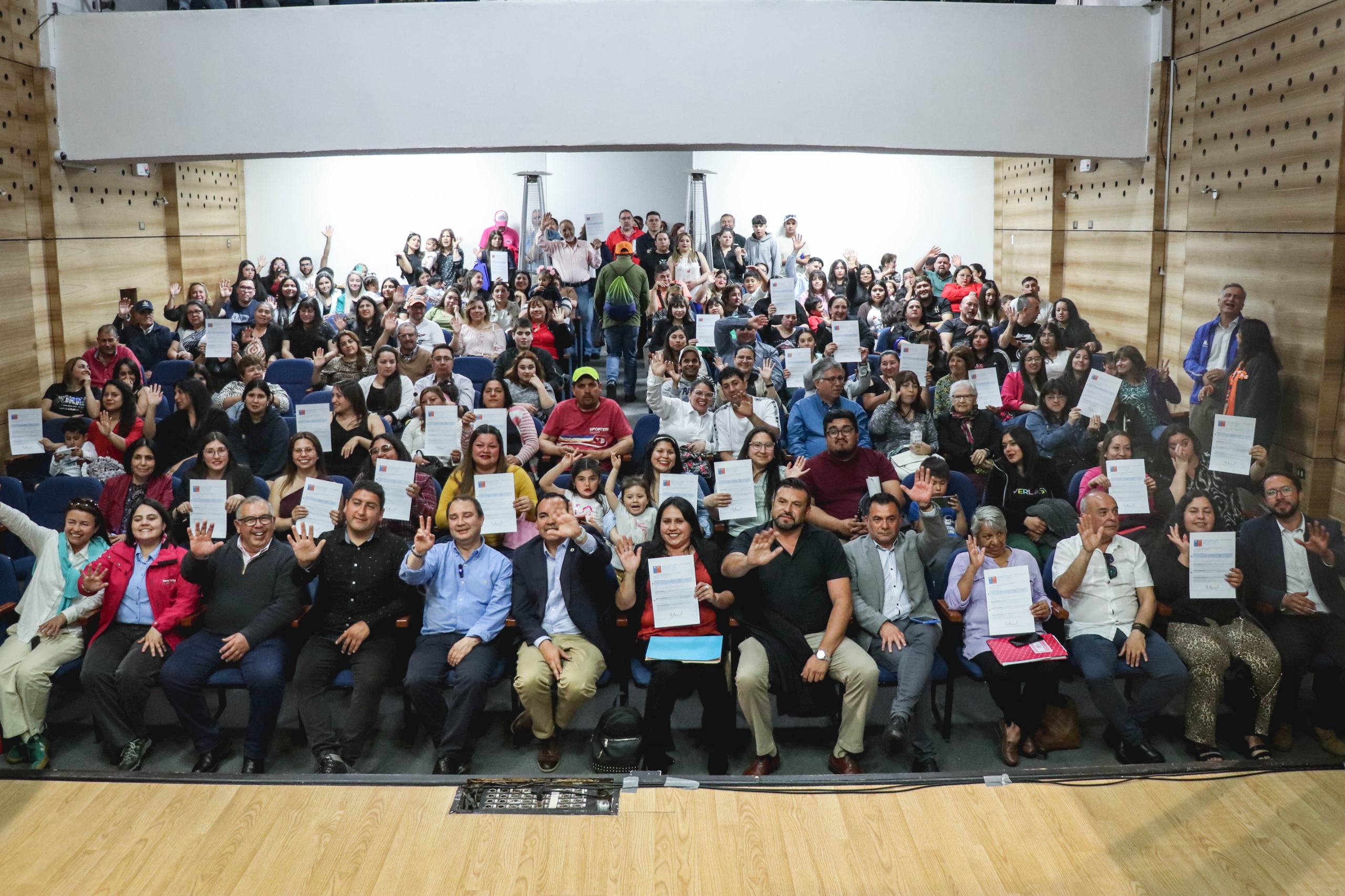 En la Gran Sala de Chillán Viejo, el Seremi de Vivienda y Urbanismo, Antonio Marchant, junto al Director de Serviu, Roberto Grandón, el Gobernador, Oscar Crisóstomo y el alcalde, Jorge del Pozo, encabezaron la entrega de subsidios al comité “El Pequén”, en donde 118 familias fueron beneficiadas por el Fondo Solidario de Elección de Viviendas (DS49), lo que garantiza el financiamiento para un nuevo conjunto habitacional en “El Bajo” de la comuna, precisamente a un costado de la Villa San Esteban.