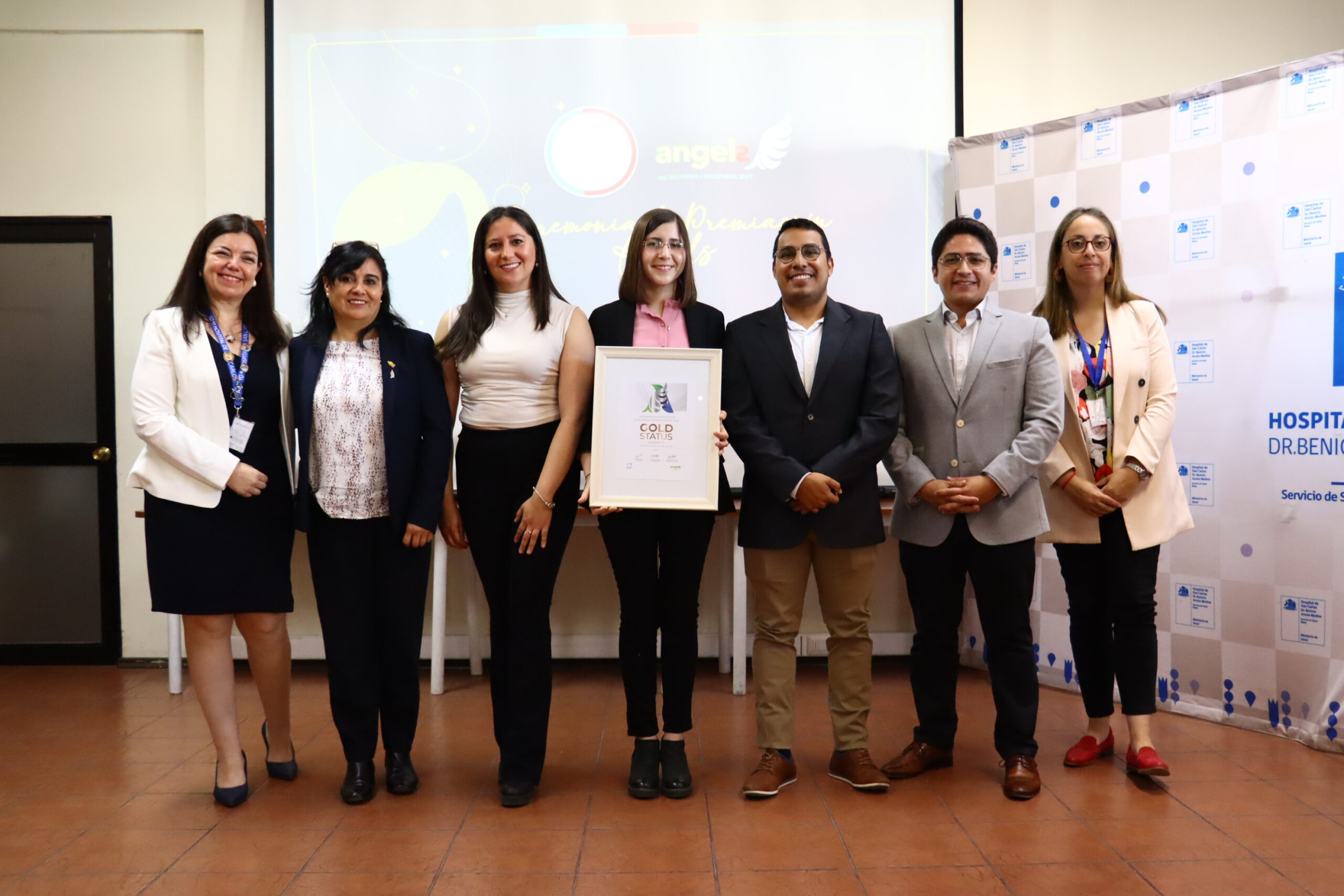 El Hospital de San Carlos Dr. Benicio Arzola Medina, fue reconocido internacionalmente a través de la Iniciativa Angels, la que distingue a establecimientos con buena respuesta en casos de pacientes Accidente Cardiovasculares (ACV) en ventana o sospecha de ACV. El recinto logró la categoría Gold, tras su buena evaluación en distintas aristas. La iniciativa Angels es un programa global creado para mejorar la atención del accidente cerebrovascular. Dentro de sus objetivos se encuentra aumentar el número de hospitales “listos para stroke”. También busca optimizar la calidad de los centros de ACV ya existentes, mejorando sus procesos, tiempos de atención y estándares clínicos, siendo estos los indicadores de medición para obtener la distinción. “Este reconocimiento posiciona al Hospital de San Carlos como un centro tratante de ACV agudo. Hemos trabajado arduamente todo este tiempo para lograr estos objetivos y finalmente hemos visto una recompensa en base a todo el esfuerzo del equipo, desde el personal de guardia que recibe al paciente con sospecha de ACV, hasta el último profesional que lo atiende”, expresó Roger Molleja, Neurólogo del Hospital. A través de una plataforma online, el equipo de neurología HSC logra realizar un seguimiento oportuno a cada paciente que asiste por un ACV, visibilizando todos susdatos, permitiendo una atención más personalizada, concreta, con una mejor categorización y monitoreando su tiempo de espera. El Director del Hospital de San Carlos, Sr. Luis Gatica Pinilla, aseguró que “esto también es un reconocimiento a la labor de las y los funcionarios del Hospital. Nuestro propósito es siempre mejorar los indicadores, ya que cada minuto que se reduce en tiempo de espera,
