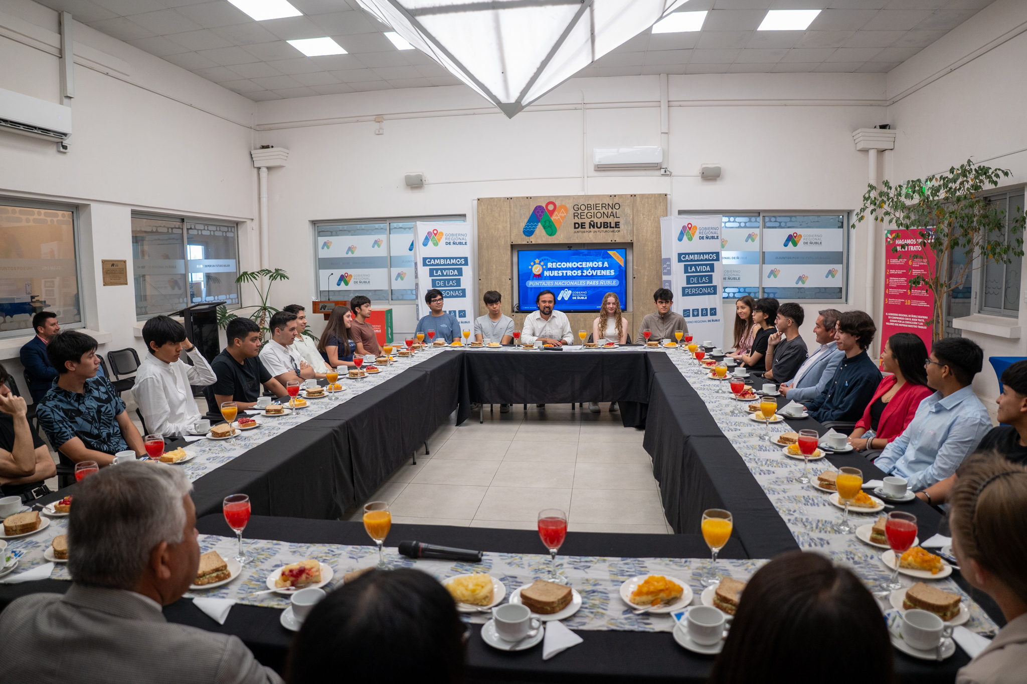 Reconocer el esfuerzo y la dedicación de más de 20 jóvenes de Ñuble que obtuvieron puntajes nacionales en la Prueba de Acceso a la Educación Superior (PAES) fue el objetivo de la actividad encabezada por el Gobernador Regional, Óscar Crisóstomo, y donde además de los estudiantes estuvieron presentes familiares, alcaldes y representantes de los municipios, y directores de los establecimientos.
