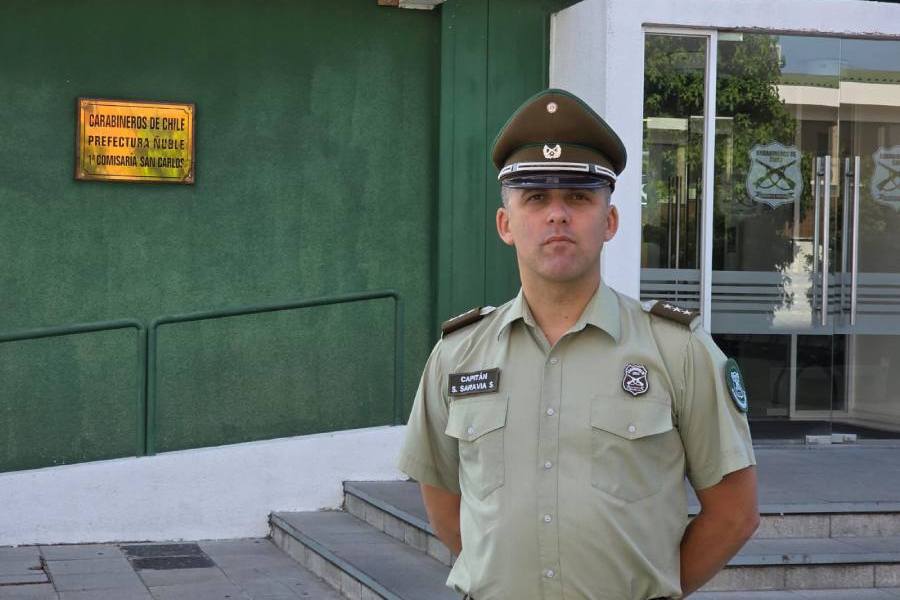 Proveniente de la Academia de Ciencias Policiales, el capitán Sebastián Saravia asumió esta semana oficialmente como el nuevo comisario de la 1ª Comisaría San Carlos, asumiendo con ello el liderazgo del equipo policial perteneciente a la provincia de Punilla, que integran la Subcomisaría San Fabián (F), Tenencia San Gregorio, Retén Ñiquén, Retén Cachapoal y Retén San Nicolás.