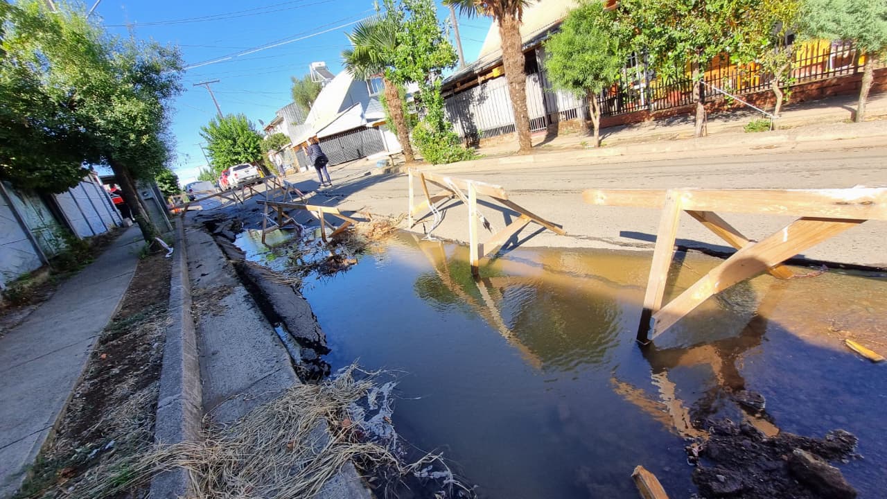 Una rotura de matriz de agua potable se originó la mañana de este miércoles en la población Mahuidantu I de la comuna de El Carmen, sector donde residen más de 200 familias y donde, desde hace 7 meses, existe un socavón en la avenida Pedro Núñez que se extiende por 70 metros de largo.