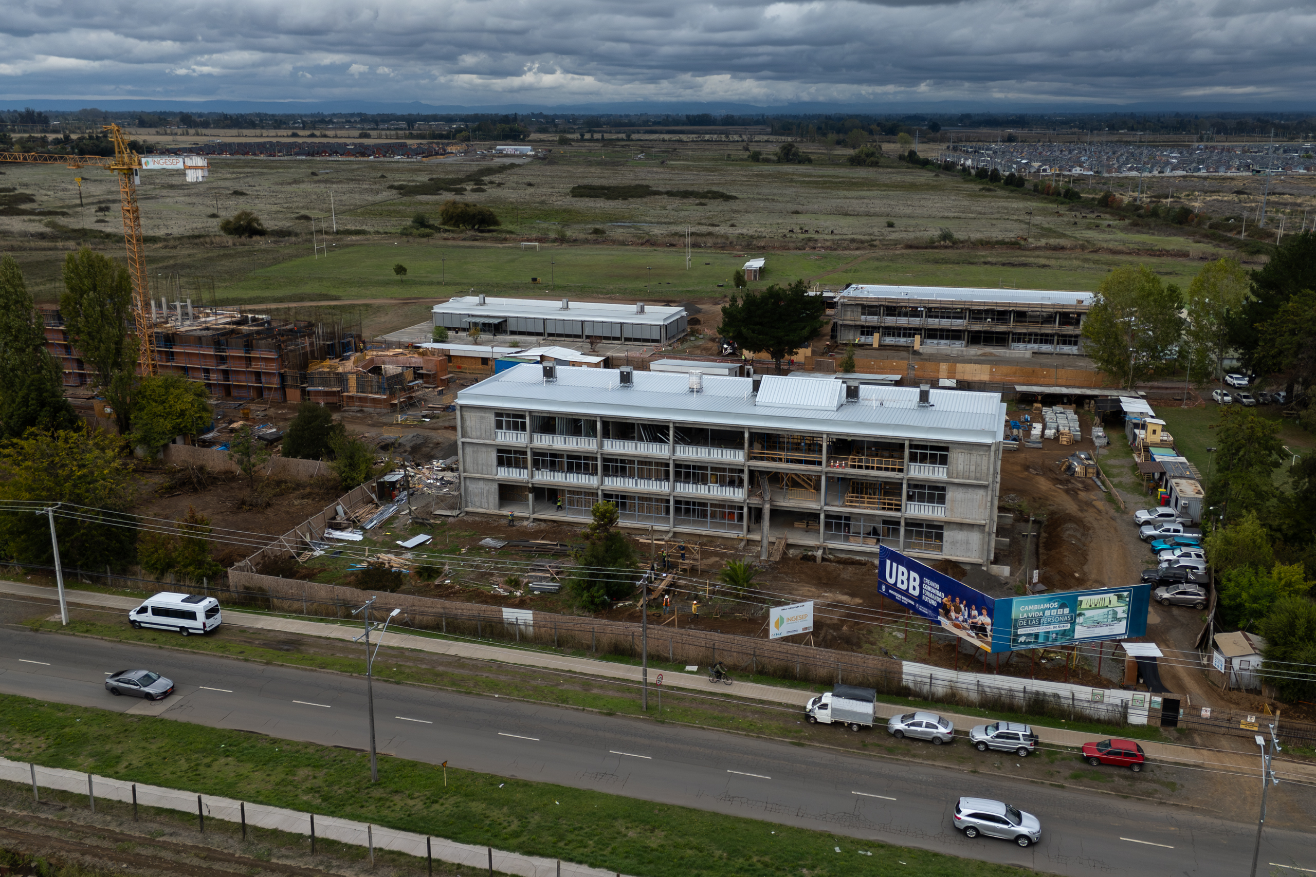 En una visita inspectiva al Campus Fernando May de la Universidad del Bío-Bío, el Gobernador Regional de Ñuble, Óscar Crisóstomo, junto a la Prorrector (s) de la casa de estudios, Sergio Vargas, constataron el avance de las obras que conforman el Polo de Salud impulsado por el Gobierno Regional. Los proyectos —que incluyen la Escuela de Medicina, el Centro de Simulación Clínica y los laboratorios para la carrera de Química y Farmacia— ya presentan un 50% de ejecución, lo que representa un hito significativo dentro de la cartera de iniciativas de Ñuble 250.